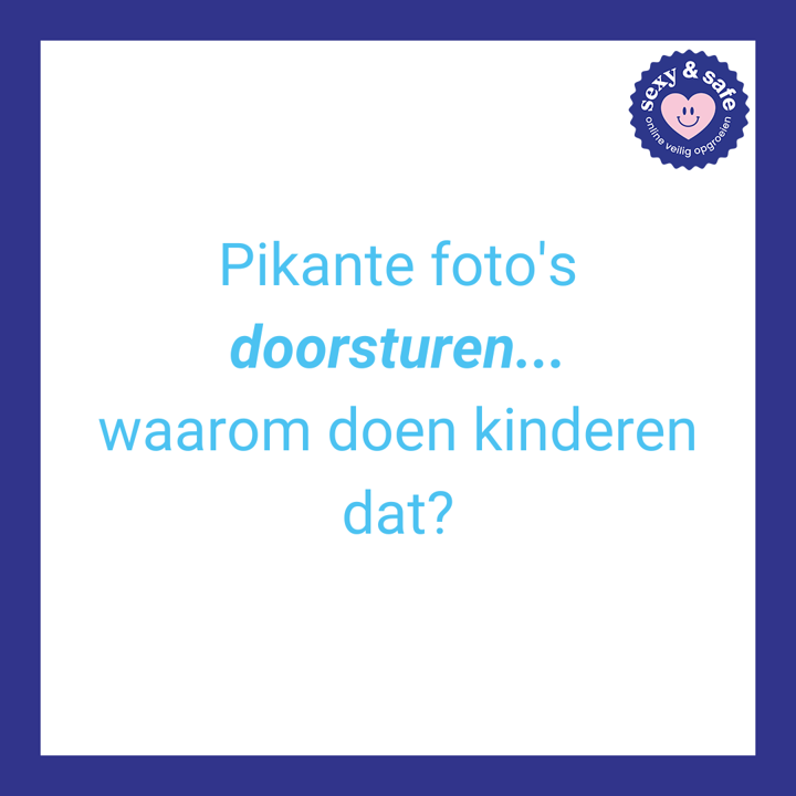 Belangrijk om daarbij te vernoemen is dat een doorgestuurde foto of filmpje níet de schuld is van degene die het materiaal in vertrouwen opstuurde. Degene die doorstuurt zit fout.